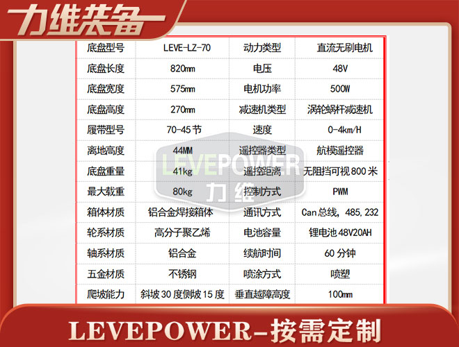LEVE-LZ-70特種橡膠履帶底盤采用天橡膠內加凱夫拉纖維經(jīng)過高溫硫化擠壓成型,材質輕、耐磨性能強,是一款不錯機器人橡膠履帶。