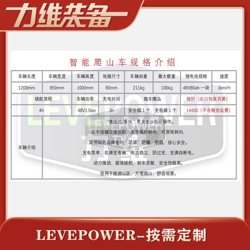 此款智能爬山電動車,履帶采用高強度纖維履帶,整車機械結構采用減震結構。整車配色搭配簡約大方。